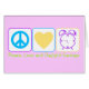 'Vrede, Liefde en Besparing tijdens de dag' is voorzien van een blauw vredessymbool, een geel hart en een paarse wekker. Al gedecimeerd in lentekleuren, dit ontwerp viert dat extra beetje daglicht.