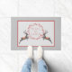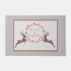 De moderne en feestelijke doormat is uitgerust met een paar rendieren met hand getekende Peace on Earth Red leaf op grijze achtergrond