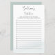 Vrijgezellenfeest game-antwoordkaart die je kunt personaliseren voor Couples Shower, Wedding Shower, Baby shower, enz. Ideaal voor gebruik met elke vraag of gaming op uw bruiloft of vrijgezellenfeest met genummerde regels voor uw gasten om maximaal 15 antwoorden op te tellen. De titel staat in hand-letterkalligrafie met casual elegantie. Een ontwerp dat minimaal is en zwart-wit is, op een witte achtergrond is afgewerkt, met een zachte waterverf en een zacht groen kleurenpalet aan de achterzijde. Eenvoudig modern en elegant ontwerp om te coördineren met veel trouwdouchethema's. Blader naar mijn collectie voor overeenkomende objecten of stuur me een bericht om de sjablonen te creëer die je nodig hebt.