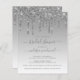 Een chic, modern design met een zilveren ombre achtergrond met een bovenste rand van zilveren glitterdruppels. De woorden "vrijgezellenfeest" en de naam van de bride-aan-moet-zijn verschijnen in kleine lettertjes kalligrafiescript met decoratieve spoelen aan het begin en het eind, met de resterende tekst in sans serif doopvont. De zilveren ombre achtergrond en glitter drip grens worden herhaald op de achterzijde. (Om de swashes te houden, vervang slechts de brieven van de bruid aan zijn naam, verlatend de symbolen op zijn plaats.)