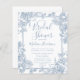 Deze elegante, moderne, stoffige blauwe, florale Bridal Shower-uitnodiging is perfect voor elke soort bruiloft of bruiloft. Het is zo makkelijk om de sjablonen te gebruiken om je eigen unieke en mooie doucheuitnodiging te creëer. Iedereen zal van hen houden!