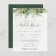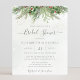 Prachtige, betaalbare bruiddoucheuitnodigingen met handbeschilderde botanische waterverf illustraties van wintergroene, pijnboomachtige en spartelige takken, keien en holbessen. Ideale keuze voor wintervakantie of kerstvakantie-bruiloften.