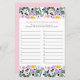 De antwoordkaart van het Spel van het vrijgezellenfeest, gepersonaliseerd met de naam van de bruid-aan-zijn of de bruid en groom. Het ontwerp van de wilde bloem heeft een bloemrand van wilde bloemen in roze lila geel en blauw. Ideaal voor gebruik met elke vraag of gaming op uw bruiloft of vrijgezellenfeest met genummerde regels voor uw gasten om maximaal 20 antwoorden op te tellen.