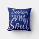 Waar anders kan vrijheid bestaan, behalve in de ziel. Een prachtige handgeschreven stijldoopvont met een donkerblauwe achtergrond van sterren.
