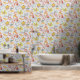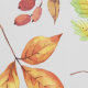 Stijlvol behang heeft een herhalend patroon van vroege herfstbladeren in sinaasappels en rood met blauwe bessen op een lichtgrijze achtergrond. Perfect voor accentmuren en een verscheidenheid aan doe-het-zelfprojecten