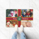 Voeg een aangepaste aanraking toe aan uw kerstversieringen met deze prachtige, monogrammed aangepast fotodoormat. Voeg vier van je favoriete familiefoto's, je initiaal en een prettige kerstgroet toe. Mat heeft een groen ornament, rode en gouden linten en ziet eruit als een gewikkeld cadeau! Deze deurmat maakt een geweldige persoonlijke verjaardag, Kerstmis of een ander kerstcadeau. Het zou een bijzonder schattig persoonlijk cadeau zijn voor een grootouder, nieuw ouder of jong gezin.
