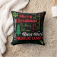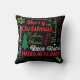 Een feestelijke gooiende kussens met een kleurrijk tekstkunstontwerp, met de woorden "Kerst smeden" in verschillende talen, waaronder Engels, Welsh, Spaans, Frans, Duits, Hongaars, Iers Gaelic en Portugees.