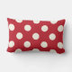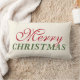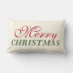 Seizoensgebonden werpkussens zijn uitgerust met een modern Merry-kersttekstontwerp in klassieke rode en groene kleuren met een zachte witte/lichte ivoorachtergrond. Een groot polka stippatroon drukt de achterkant van de kussen omhoog.