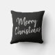 Deze feestelijke gooi kussen kenmerkt de uitdrukking Kerst Merry in een trendy borstel die krommend manuscript in zwart-wit binden.