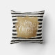 Vrolijk kerstfeest in chique witte letters op een plons goud op een achtergrond van zwarte en witte strepen en gouden stippen, dit gooi kussen is leuk om toe te voegen aan uw vakantie-inrichting. MEER design in ons collectie.