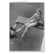 Vrouw die op het duikbord zit, man die haar hand grijpt (B&W), verhoogd uitzicht | George Marks | AssetID: 72131088