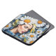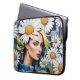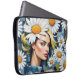Vrouw gezicht met madeliefjes en denim patchwork laptop sleeve