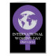 Paarse wereldkaart omringd door het venussymbool om Internationale Vrouwendag te vertegenwoordigen. Pas tekst en achtergrondkleur aan.