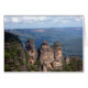Trois Soeurs, Blue Mountains, NSW, Australie. Les Trois Soeurs est une formation rocheuse dans les Blue Mountains de la Nouvelle-Galles du Sud, Australie. Ils se trouvent à proximité de la ville de Katoomba et sont l'un des sites les plus connus des Blue Mountains, dominant la vallée de Jamison. Leurs noms sont Meehni (922 m), Wimlah (918 m) et Gunnedoo (906 m). Les Soeurs ont été formées par l'érosion. Le grès doux des Blue Mountains est facilement érodé au fil du temps par le vent, la pluie et les rivières, et les falaises entourant la vallée de Jamison sont lentement brisées. Des formations comme les Trois Soeurs sont créées lorsque l'eau s'infiltre dans de petites fissures dans la roche, les élargissant progressivement au fil du temps pour former de grandes indentations. Finalement, les Soeurs seront complètement érodées.