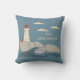 Voeg een gepersonaliseerde touch toe aan uw strandhuis bank met dit kussen. Het heeft een eenvoudige nautische stijl illustratie van een vuurtoren in rood en crème of ivoor. De vuurtoren staat op een rotsachtige kust met golven die beneden neerstorten en crèmekleurige wolken aan de hemel. De afbeelding is ingesteld tegen een zachte Franse blauwe achtergrond.