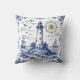 Een prachtig, blauw toile de jouy maritiem ontwerp in het blauw, met een vuurtoren, zeilschepen, meeuwen en een kompas roos in het geel. Perfect kussen voor een strandhuis, of voor iedereen die van de oceaan houdt.