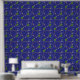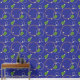 De gloeiende vuurvliegjes dansen onder drijvende bladeren boven een diepe blauwe achtergrond. Oranje en zilverringen creëer een effect als gestileerde rimpels om de basis een waterachtig gevoel te geven.
