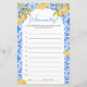 Onthul het liefdesverhaal op een vermakelijke manier met onze "Waar waren ze?" Vrijgezellenfeest Game, met het boeiende ontwerp geïnspireerd door mediterrane tegels en de verfrissende allure van citroenen. Dit interactieve spel nodigt uw gasten uit om de locaties te raden waar de bruid en bruidegom werden vastgelegd in charmante foto's, waardoor de viering verandert in een reis van gedeelde herinneringen en gelach. Elke spelkaart toont het betoverende ontwerp van mediterrane tegels en zet het podium voor een speelse verkenning van de avonturen van het paar. Levendige citroenen voegen een uitbarsting van frisheid toe, die de vreugdevolle geest van het vrijgezellenfeest weerspiegelt. "Where Were They?" staat centraal en nodigt gasten uit om deel te nemen aan dit prachtige spel. Personaliseer de spelkaarten met de namen van het paar en de datum van het vrijgezellenfeest, waardoor een unieke en memorabele aandenken voor de binnenkort te trouwen. De toevoeging van aanpasbare details voegt een persoonlijke touch toe aan het spel, waardoor het een geliefd onderdeel van de viering is. Gemaakt van hoogwaardige, duurzame kaarten, onze "Waar waren ze?" Vrijgezellenfeest Game combineert entertainment met verfijning. Als gasten deelnemen aan dit gokspel, delen ze niet alleen de vreugde van de reis van het paar, maar dragen ze ook bij aan de levendige sfeer van het vrijgezellenfeest. Maak van je vrijgezellenfeest een interactieve viering van liefde en gelach met onze "Waar waren ze?" Vrijgezellenfeest spel. Doordrenk de festiviteiten met de zoete verfijning van mediterrane esthetiek en creëer een onvergetelijke ervaring die gasten dichter bij het hart van het liefdesverhaal brengt.