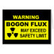 Een zwart-geel waarschuwingsbord met tekst lezen: "WAARSCHUWING, BOGON FLUX, KAN DE VEILIGHEIDSBEPERKING OVERSCHRIJDEN." Er verschijnt ook een waarschuwingssymbool voor radioactief materiaal. De bogon is een elementair deeltje dat de eigenschap heeft van bogositeit of van bogus zijn (d.w.z. nep van kwaad). Alle mensen zijn natuurlijke laagvlakke bacteriën die uitstoten. De emissieniveaus schommelen in de tijd. Politici, andere individuen, zoals tweedehands autoverkopers, zijn hoogstaande bronnen van bogen. Als zulke individuen extreem hoge niveaus van bogen uitstoten, zoals bij het doen van campagnebeloften, kan er een bogon-flux optreden. Een bogofluitje kan zeer gevaarlijk zijn voor de mensen in het gebied. Bogon was oorspronkelijk hacker jargon dat te maken had met nepadressen op een computernetwerk.