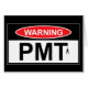 PMT-waarschuwingsbordkaarten voor vrouwen compleet met hangende man silhouette om anderen te waarschuwen voor je PMT en je daarmee samenhangende stemmingswisselingen,ha! De mannen van de zorg in een KMT waarschuwingsbord T shirt dit herfst!