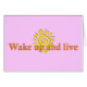 Een felgele zon is het brandpunt van dit leuke ontwerp. De woorden "Wakker worden en leven" zeggen het allemaal: ga naar buiten en ervaar alles wat het leven te bieden heeft! Schud depressie, herinner je vrienden eraan dat ze moeten stoppen met zo laat slapen of draag het gewoon omdat je de zon leuk vindt :)