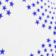 De blauwe sterren spiraal van klein in centrum aan groot bij buitenrand. Meerdere constellaties op witte achtergrond