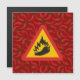 Driehoekswaarschuwingsbord met peper en vlamsilhouet.