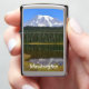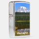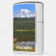 Koel op zippo lichtere hoesje met een schilderachtig foto-afbeelding van sneeuwkapotte 'Mount Rainier'- en 'evergreen'-bossen in de Pacifische noordwestelijke staat Washington. Selecteer de stijl van uw hoesje.