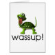 Een gelukkig gelukzalige vormgeving met een gekke schildpad met zijn tong en de woorden, WASSUP!, eronder. Heel leuk, heel leuk.