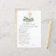 Test de kennis van uw gasten en vermaak ze met deze "Wat zei de bruidegom?" parels en prosecco vrijgezellenfeest-spelkaart! Met een verfijnd champagneglas en een bloemmotief van druiven, daagt deze leuke activiteit gasten uit om de antwoorden van de bruidegom te raden op leuke vragen over de bruid. Volledig aanpasbaar, het is een geweldige aanvulling om uw vrijgezellenfeest onvergetelijk te maken.