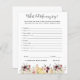 Deze baby shower spelkaart is voorzien van prachtige pompoenen & floralen met zachte waterverf in tinten van wazige roze en witte tinten die zijn uitgebalanceerd met zoet oranje en onbeschoft paars, waardoor het een warm en luchtachtig palet wordt. Verander achtergrondkleur of voeg grafiek toe om uw douchethema aan te passen. Neem contact met mij op voor een aangepaste bestelling. Natuurlijk is het niet nodig dat je spelletjes speelt op het baby shower, maar denk er eens over na: je gaat een groep van alle leeftijden hebben, en de meeste gasten hebben elkaar waarschijnlijk nooit ontmoet voor het feest. Het mengen in een paar van deze klassieke baby showers spellen is een perfecte manier om het ijs te breken. Deze professioneel ontworpen kaarten zijn snel aanpasbaar. Voeg uw douanetekst aan dit ontwerp toe door de "Edit this design sjabloon"vakjes op de rechterkant van het punt te gebruiken, of blauwe "pas het"knoop aan om de tekst te schikken, de doopvonten en de kleuren te veranderen en extra informatie of afbeeldingen aan dit ontwerp ook toe te voegen. Klik op "Verder aanpassen" om de volledige bewerkingsopties te openen. Als je coördinerende objecten nodig hebt (dank je kaarten, enz.), kun je contact met me opnemen voor een aangepaste bestelling. ****Voor aangepaste aanvragen heb je mijn hulp nodig. Plaats deze koopwaar niet in je kar. Stuur me in plaats daarvan een e-mail naar lauralise@iyhtvdesigns.com Een link naar je koopwaar wordt naar je gestuurd zodra het object beschikbaar is. U kunt die link gebruiken om uw bestelling te plaatsen. Laat maximaal 48 uur staan.