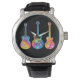 Het hedendaagse, kleurrijke GUITAR ONTWERP in een 60 geïnspireerde, retro pop kunststijl. Drie snaarinstrumenten van de rots, jazz en pop overtuigingen voor muzikanten, gitaristen en muziekliefhebbers.