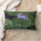 Het afbeelding op dit Lumbale Kussen is een originele foto van MaeFlowers van een waterlelie, een bloeiende bloem te midden van de leliepads die op het water zweven. De bloem is een mooie lavendelblauwe kleur, die zich onderscheidt van de donkergroene, ronde lilypads.