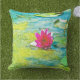 Een fuchsia-waterlelaar met kalkgroen foliage in turkooiswater.