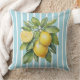 Watercolor Lemons on Blue Striped Background Kussen