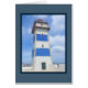 Nautical themed design with watercolor lighthouse decoration in dark blue frame. C'est possible to change the background color and to add different one to the design with your choice.