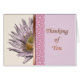 Een mooi zacht schilderij van een waterlustig. De woorden denken aan jou aan de zijkant. Een koperen satijnlint en een roze kant vullen de kaart aan. Perfect voor die heel speciale persoon.