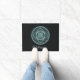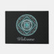 Deze mandala is ontworpen voor het sterrenbeeld Waterman, dat een turquoise steen in het midden weergeeft, omringd door elementen die het teken voorstellen, zoals het teken voor het teken, het sterrenbeeld en het alchemistische symbool voor lucht, evenals filigraanwijnstokken en weefsels die het allemaal in een massief afbeelding in tinten turkoois, zilver en zwart wikkelen. Pas de tekst op deze deurmat aan met uw eigen gewenste begroeting of verwijder deze volledig om een unieke decoratie voor uw entree te maken.
