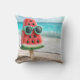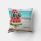Een watermeloen ijslolly met zonnebril in strandzand met een schilderachtig oceaanachtergrond