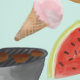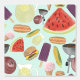 Waterverf picknick ontwerp voor een keukenaccentwand; grill, hamburgers, hotdogs, watermeloen, limonade, maïs op de kolf, ijsjes en ijsjes.