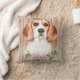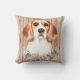 De vun kussens voor dierenliefhebbers zijn voorzien van een realistische afbeelding van het portret van de waterverf van bruine en witte beagle met florale spray op de achtergrond van het faux-houten paneel.