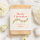 Stijlvolle waterverf van groene bladeren en rode bessen op een ivoren achtergrond, Vrolijk kerstfeest en uw familienaam in chique belettering, deze keukendoek is een mooie aanvulling op uw kerstvakantie-decor. OVEREENKOMENDE objecten in ons collectie.