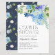nodigt gasten uit voor uw evenement met deze aanpasbare florale paren douche stationery-uitnodiging. Het bevat een waterverf boeket van blauwe hydrangeas, witte rozen en groene accenten. Pas deze hydrangea-paren aan door naam, tijd, datum en andere gebeurtenisdetails toe te voegen. Deze botanische doucheuitnodiging voor paren is perfect voor de douches van de lente, de douches van winterparen en de douche van tuinparen.