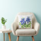 Gooi kussen met mijn waterverf Blauwbonnetjes die schilderen in tinten blauw, paars en groen op een witte achtergrond.