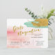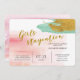 Breng je vrolijke houding aan ten opzichte van een bruidsfeestje met deze waterverf blush-uitnodiging en turkooisgouden accenten. Alle informatie is te vinden in sans serif font met aangepaste gouden code