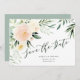 Waterverf gooit perzikflora en bladerblad Wedding met de datumkaart.