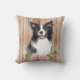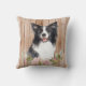 De vun werpkussens voor hondenliefhebbers zijn voorzien van realistische afbeelding van de waterverf van de Collie-hond aan de zwarte en witte rand met florale spray op de achtergrond van het faux-houten paneel.