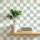 Geometrisch checker ontwerp met zee schuimgroen en crème geweven waterverf vierkanten. Rustig en neutraal voor een gevoel van licht en ruimte.