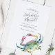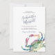 Deze zomer koppelt de doucheuitnodiging kenmerkt uw namen die in een stijlvolle handgeschreven manuscripttypografie met gebeurtenisdetails in een klassieke grove serif van de houtskool op een scherpe witte achtergrond worden geplaatst. Mijn oorspronkelijke waterverf krab in tinten, blues en groenen kleurt de voorkant. De uitnodigingskaart keert terug naar een vleiende blauwe marinekleur. Een kustkreet, maar elegant, voor het casual strand in New England, voor de zee- of zomerparen of vrijgezellenfeesten. Om mijn volledige trouwkantoorbenodigdheden te zien, bezoek DoTellABelle op Zazzle.