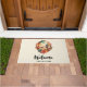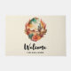 Een welkome deurmat met een prachtig geschilderde illustratie. Groene cactussen en bruine bergen met oranje woestijnbloemen. Schilderachtig zuidwestontwerp.